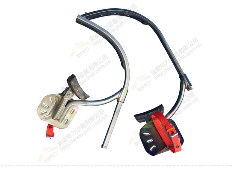 腳扣是攀登水泥電桿的主要工具之一,用腳扣的半圓環(huán)和根部裝有橡膠套或橡膠墊來(lái)防滑。