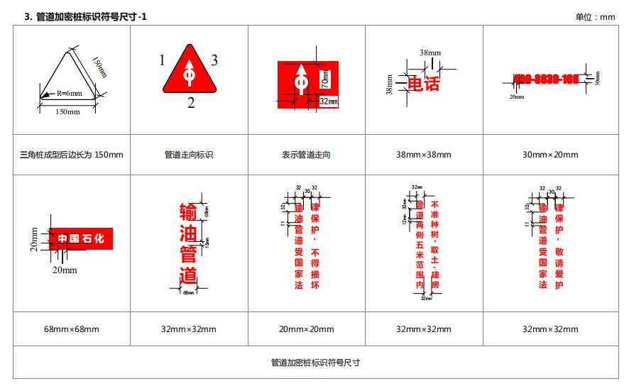 2. 管道加密樁標(biāo)識(shí)制作尺寸