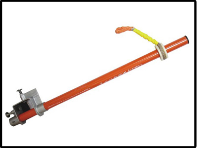 本產(chǎn)品針對110kv刀閘的通用安裝結(jié)構(gòu)而設(shè)計,它用做110kv刀閘檢修專用防護(hù)架,檢修工人作業(yè)時隨身攜帶,將其卡緊在110kv刀閘的固定槽鋼上,作為安全帶固定點(diǎn)。采用本產(chǎn)品可摒棄將絕緣子作為安全帶固定點(diǎn)的習(xí)慣做法,消除安全隱患,避免事故發(fā)生。
